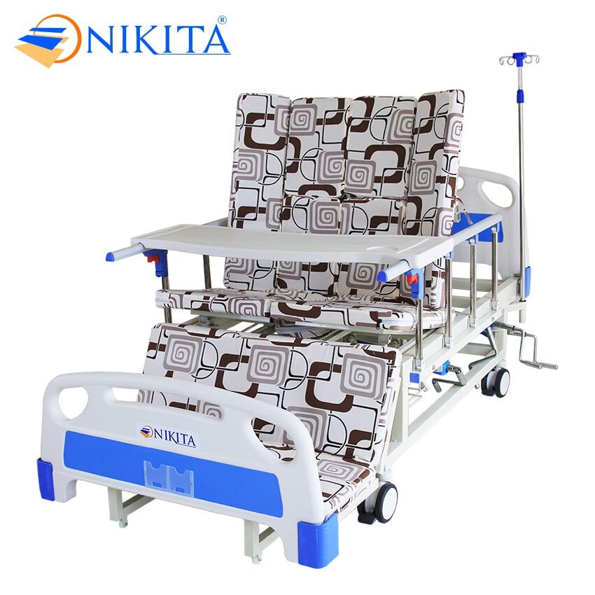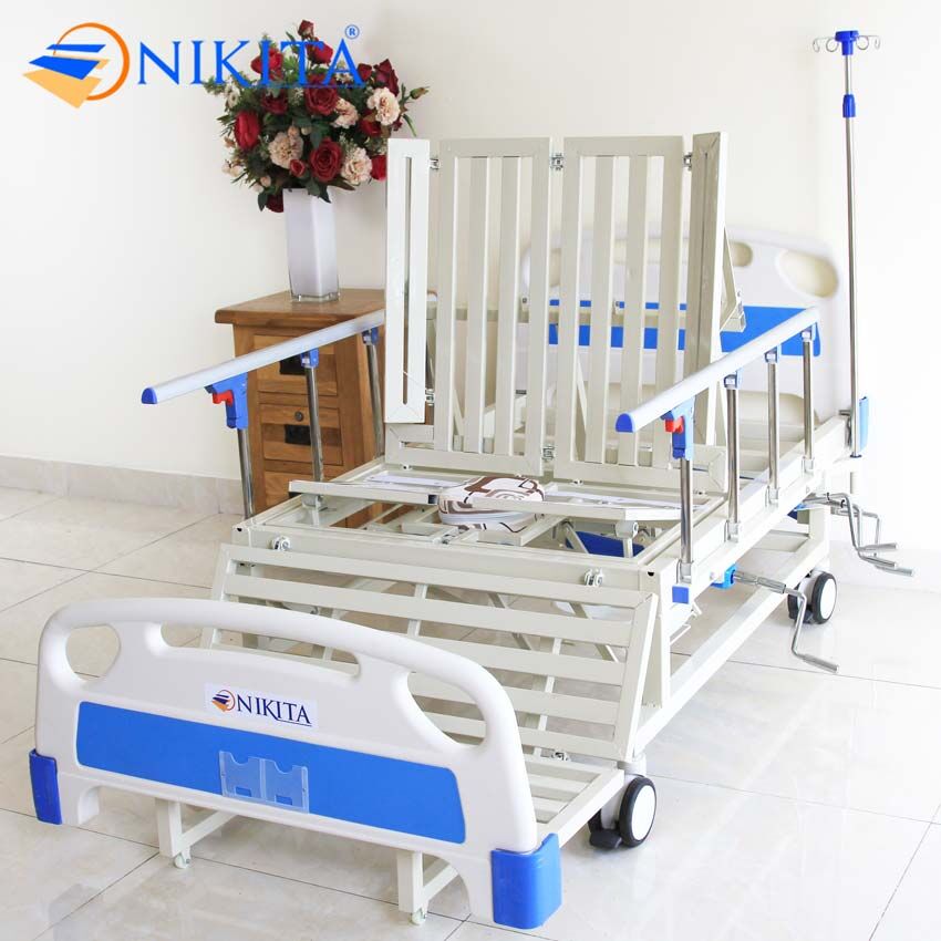 - Giường bệnh nhân 4 tay quay NIKITA DCN04 có tem nhãn hiệu NIKITA.