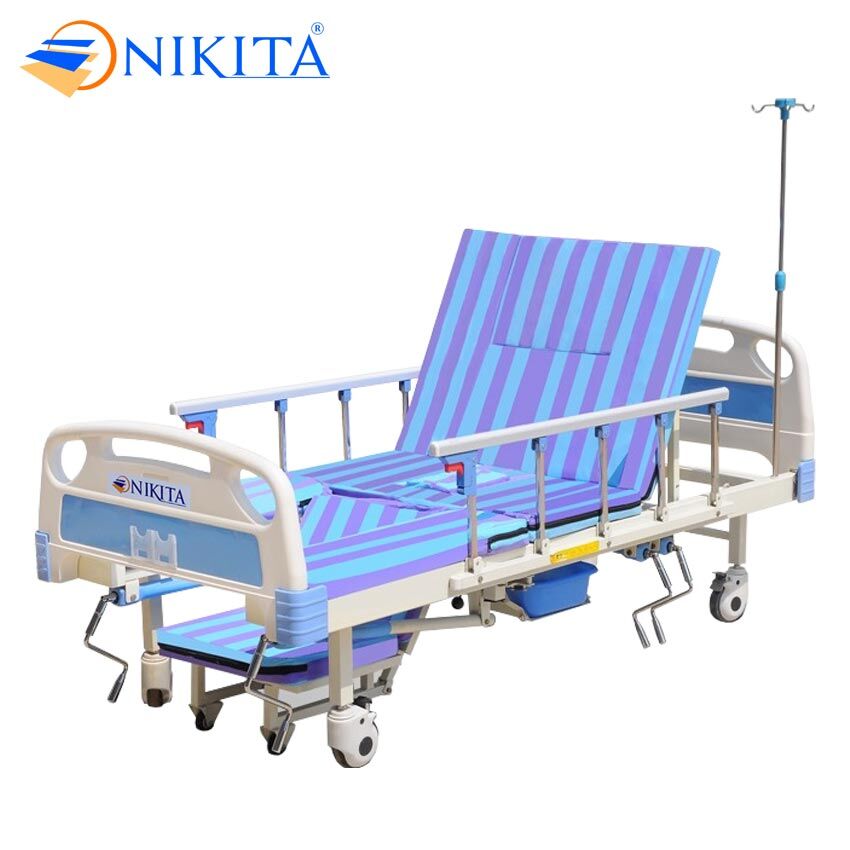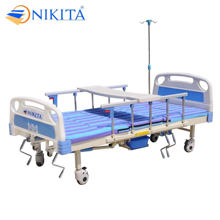 - Giường bệnh nhân 4 tay quay NIKITA DCN05 có tem nhãn hiệu NIKITA.