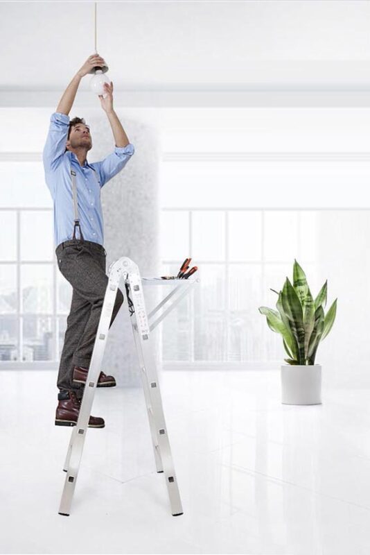 4/ Khi sử dụng thang trên chiều cao 2.5m trở lên nên có người hỗ trợ bên dưới