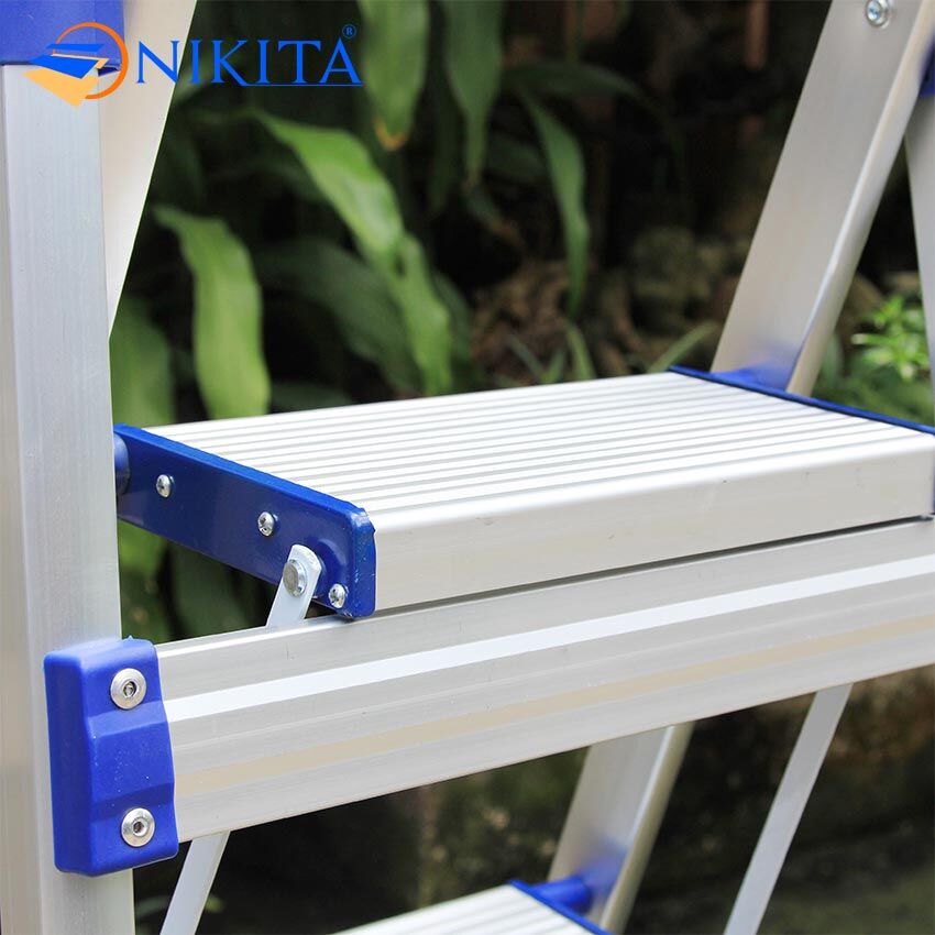 - Thuộc dòng thang nhôm ghế bậc lớn của thương hiệu NIKITA, bậc và khung được gia công bằng nhôm chịu lực cao